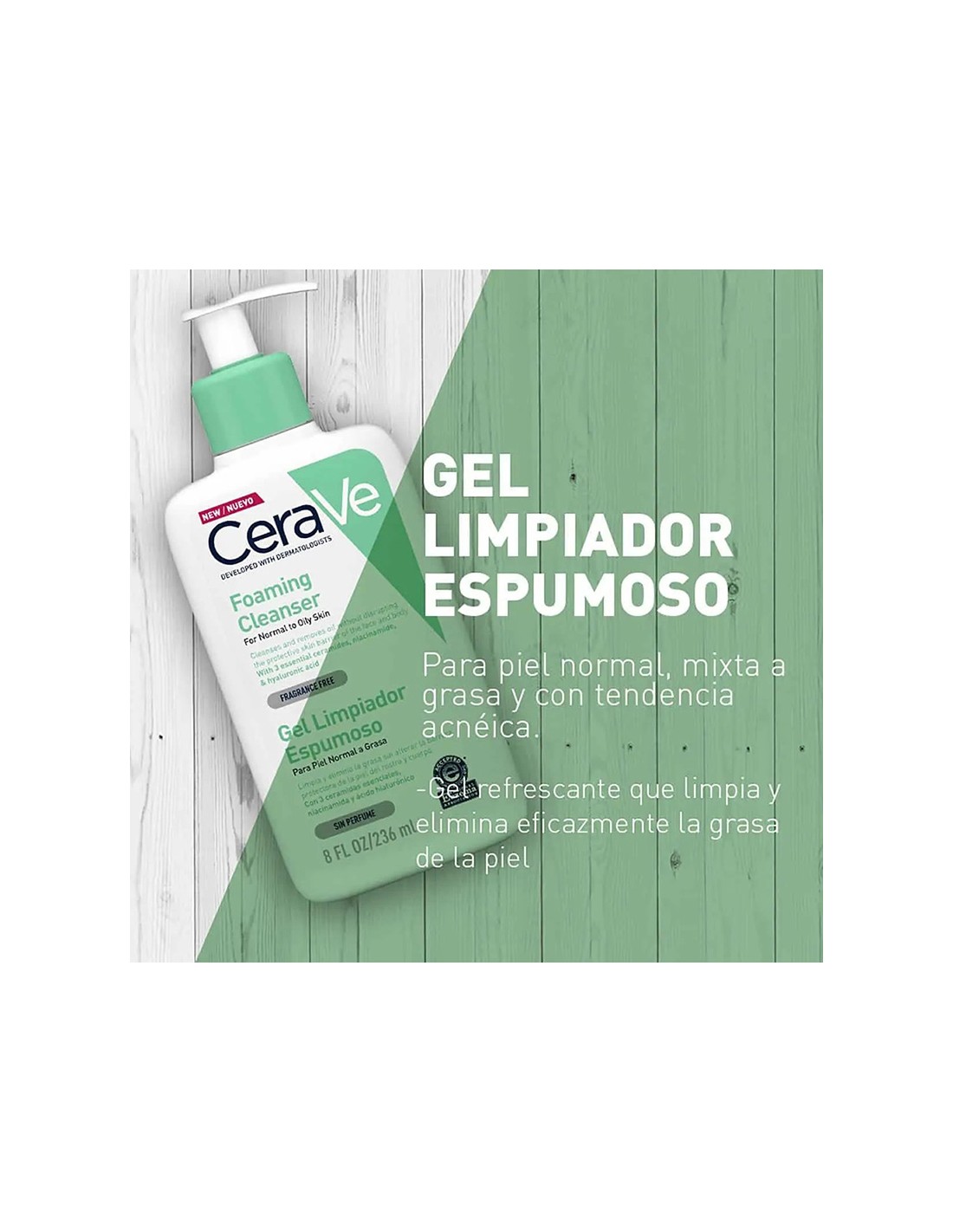 Cerave Gel Limpiador Espumoso 236 ml es un limpiador diseñado para piel normal a grasa, que elimina eficazmente el exceso de sebo y las impurezas, mientras hidrata y protege la barrera cutánea. Formulado con ceramidas, ácido hialurónico y niacinamida, deja la piel fresca y equilibrada.