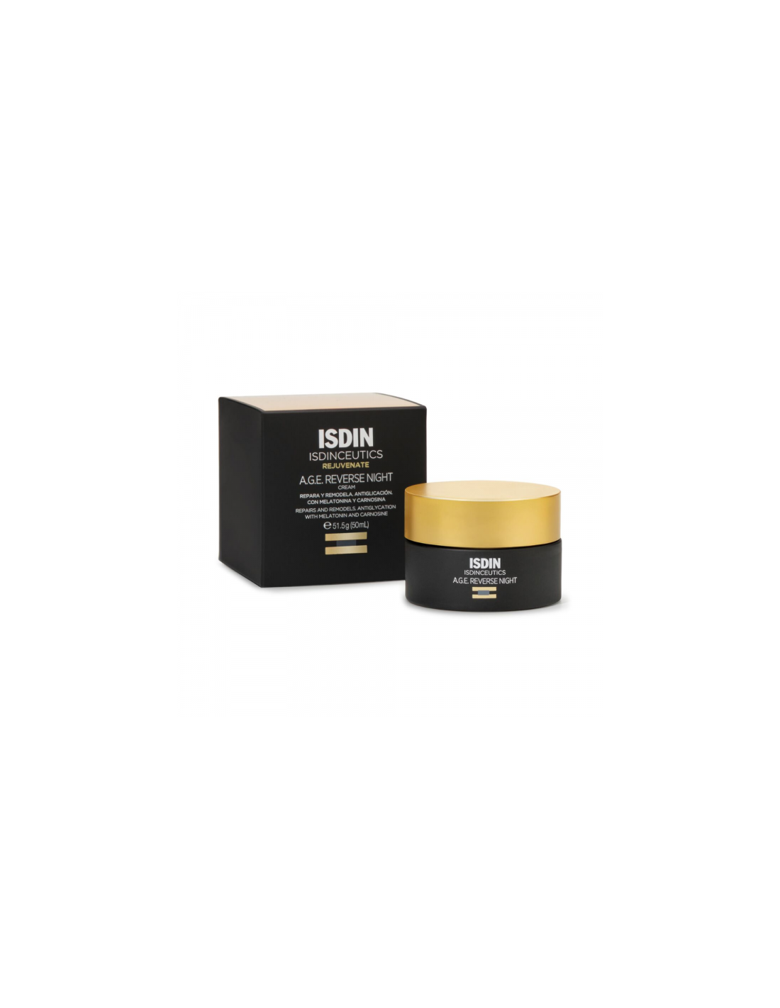 ISDINCEUTICS A.G.E. Reverse Night 50 ml es una crema nocturna antiedad que combina melatonina, carnosina y extracto de Helichrysum italicum para regenerar, calmar y combatir los signos del envejecimiento mientras duermes.