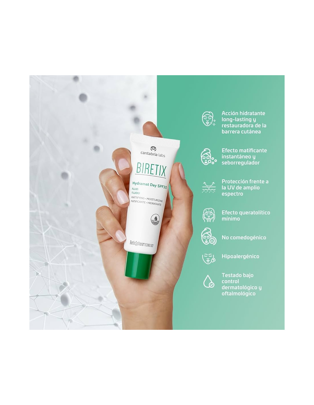 BIRETIX HIDRAMAT DAY SPF30 50 ML de IFCANTABRIA: La solución diaria ideal para pieles grasas o con tendencia acnéica, ofreciendo hidratación y protección solar avanzada.